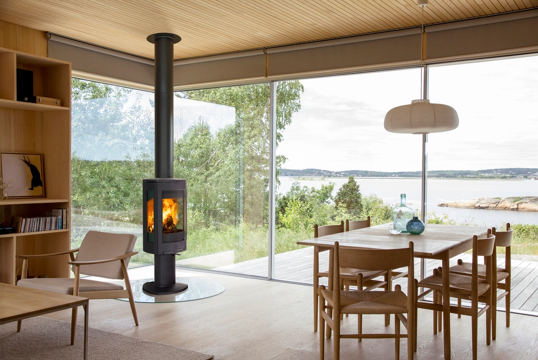 - Widok ognia z każdej perspektywy: Dzięki unikalnemu, trójstronnemu przeszkleniu oraz opcjonalnej podstawie obrotowej (360°), możesz podziwiać tańczące płomienie z dowolnego miejsca w salonie – czy to z sofy, czy od strony stołu w jadalni.